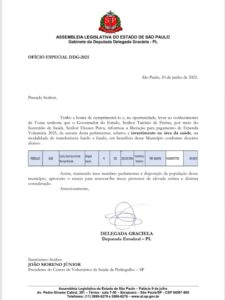 A Santa Casa de Misericórdia de Pedregulho registrou o recebimento de uma importante verba de custeio no valor de R$ 300 mil, destinada pela deputada estadual Delegada Graciela (PL). O recurso foi repassado por meio da Prefeitura Municipal de Pedregulho, que mantém parceria constante com a instituição na promoção da saúde pública.